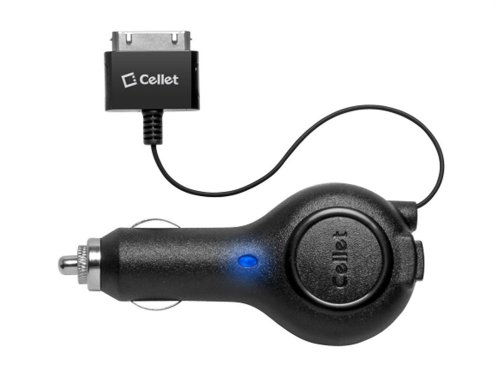 Cellet Premium Retractable Car Charger for Apple is "Made for iPhone" certified to power up your iPod and iPhone quickly and safely.;A little button below Cellet logo rapidly retract the charging cord for tangle-free, convenient storage. Short circuit protection by an ;intelligent IC chip prevents overcharging your Apple device and automatically switches to a power saving mode upon complete charge.;Cellet Premium Retractable Car Charger is a perfect solution on the road.