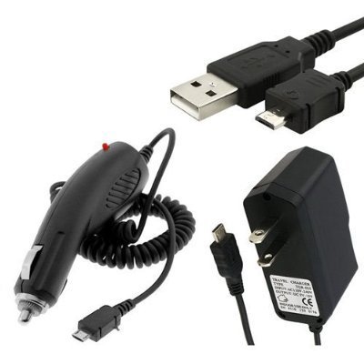 Combo Includes 1 x New Premium Power Car Charger with Smart IC Chip 1 x New Premium Power Travel/Home Wall Charger with Smart IC Chip 1 x New USB Data Charge Sync Cable New Premium Power Car Charger with Smart IC Chip Recharge on the go by harnessing power from your car with a cigarette lighter adapter. Phone can be used during charging. Intelligent IC chips prevent overcharging. Short circuit protection. LED charging indicator. New Premium Power Travel/Home Wall Charger with Smart IC Chip For the professional executive on the go, this charger is a must! The travel charger is lightweight and easy to carry while traveling. Simply plug one end into the wall, the other into the phone or desktop charger, and it will recharge and condition your battery. New USB Data Charge Sync Cable Brand new Non-OEM USB Data Cable. Connect your cell phone with your PC/Laptop by the USB port. Allow to manage & backup your phonebook, and change ring tones/logo etc. Allow you access your contacts, PC data, the Internet and e-mail. 2in1 feature charge and sync your phone at the same time. Phone and software features are limited to the phone's capability and the service provider's default settings. Charging feature may not work on all models. Please consult with your phone's user manual and your service provider for the availability of these features. Drivers, software and technical support are not included. It is buyer's responsibility to determine the required software for certain functions and obtain it independently.