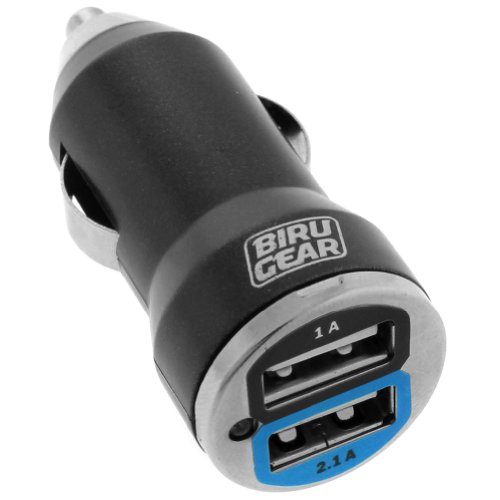 BIRUGEAR 2-Port USB Car Charger Vehicle Power Adapter - Black (2000mA) Input: 12~24v DC. Output: 5.0V / 2000mA. Short circuit protection. LED charging indication. 2 ...