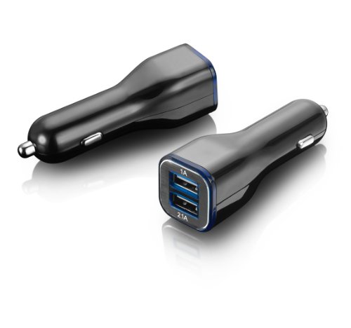 - Dual USB port car charger with dedicate 1A (smartphone) and 2A (tablet) outputs for most mobile devices