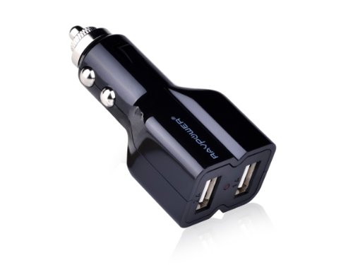 The RAVPower 3.1A / 12W Dual Port USB In Car charger charges TWO of electronic devices at once, eg. iPad, iPhone, iPod, MP3 Players, Digital Cameras, PDAs, Mobile Phones and other devices. It is compact with high quality finish and comes with full 1 year limited warranty.