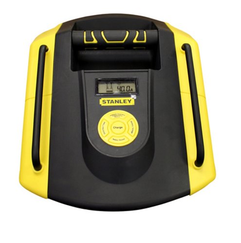 Stanley 40 Amp automatic battery charger comes with a digital LCD screen and has a patented 110 amp engine start. Features high frequency technology with 3 stage charging and is fully automatic.