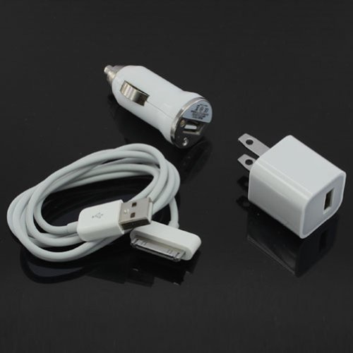 USB Cable+Wall and Car Charger for Apple iPod iPhone 4 4G 4s 100% Brand New Generic Chargers and Data CableWall charger + Car charger + USB Data Cable